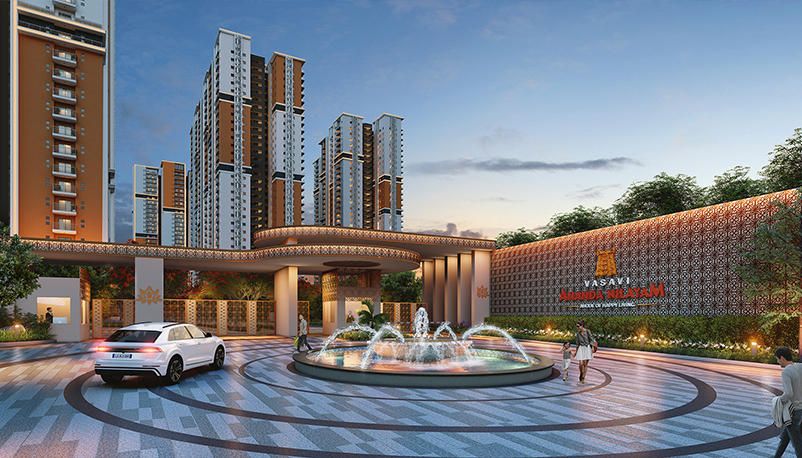 Expediency like never before! Ananda Nilayam created a new era in the evolution of the gated communities in India. With a skyline directly connecting to the Vasavi L.B. Nagar metro station, experience the comfort & convenience at your doorstep. Set amidst lush greenery & picturesque landscapes, this idyllic residential haven offers tranquility. All-feature-packed 2, 3 & 4 BHK apartments & sky villas are equipped with amenities that are a testament to its commitment to providing a lifestyle of convenience & indulgence. Revel in the splendor of a shimmering swimming pool, unwind in the serene gardens, or partake in recreational activities at the well-equipped clubhouse. Ananda Nilayam stands as an epitome of gated community villas of Hyderabad