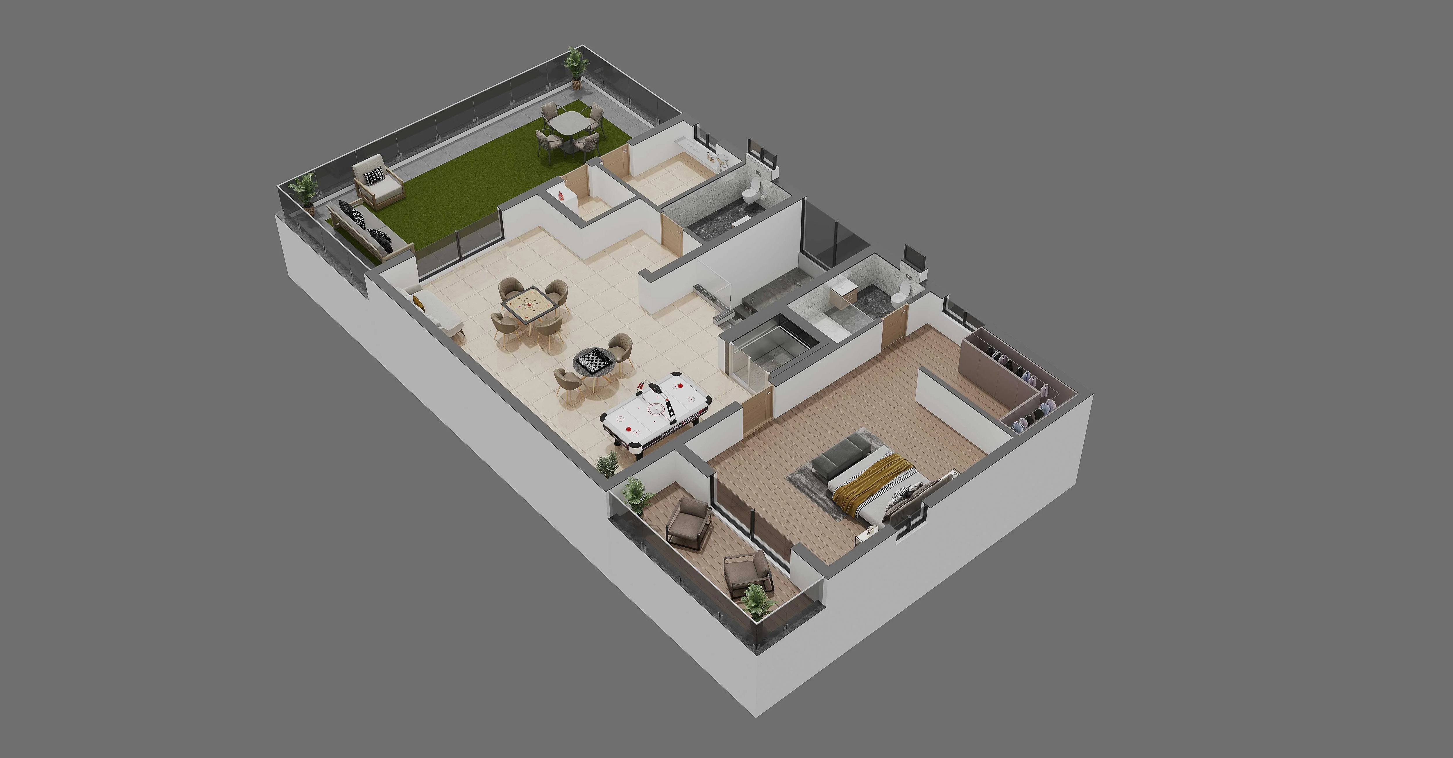 Gym: Will be provided with commercial low impact treadmill, total body elliptical fitness cross trainer, upright cycle, 4 station multi-gym, multi-purpose bench and dumb-bell rack, smith machine, power rack and machine fly. Open air gym is also provided.
